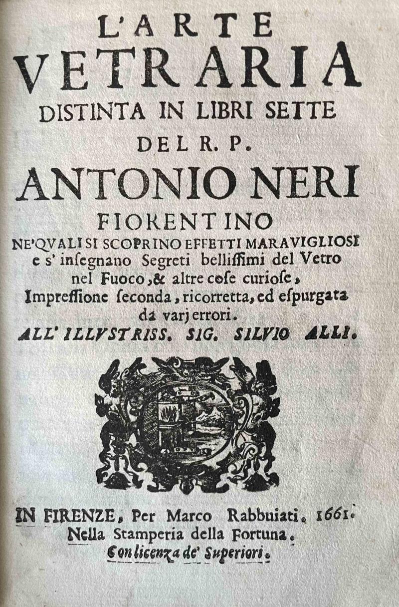 Arte vetraria Alchimia Seicentina Firenze Editore Marco Rabbuiati nella Stamperia della Fontana 1661 legatura in pergamena antica, tassello e titolo in oro, Marca tipografica al frontespizio in 8° (14x 9)16 pp nn 192.Ottimo esemplare. NOTE Cultore di alchimia e maestro intagliatore, prese gli ordini nel 1601. Visse ad Anversa dal 1604 al 1611. La sua Arte vetraria, il principale trattato sul vetro del Seicento, fu più volte ristampato in diverse lingue. Autore : Antonio NeriEditore : Marco RabbuiatiAnno di pubblicazione : 1661 Approfondimenti L'Arte Vetraria Antonio Neri fu un alchimista convinto; seguace di Paracelso si dedicò alla grande opera indagando i "maravigliosi e bellissimi segreti" del vetro. L'utilizzo dei metalli e la loro trasmutazione in oro gli permise di realizzare opere in vetro di ineguagliabile bellezza e di formulare la ricetta "Donus Dei" alla base dell'arte di trasmutazione. Il suo trattato è uno dei più importanti contributi all'arte della lavorazione del vetro e dei suoi misteri. Le tecniche di lavorazione furono svelate dall'autore che permise di accedere ai segreti dei maestri vetrai della Serenissima.L'opera affronta la realizzazione del cristallo,del calcedonio, dei vetri colorati, del vetro a piombo, delle paste di pietre preziose, degli smalti e delle lacche. Note sull'autore Antonio Neri Cultore di alchimia e maestro intagliatore, prese gli ordini nel 1601. Visse ad Anversa dal 1604 al 1611. La sua Arte vetraria, il principale trattato sul vetro del Seicento, fu più volte ristampato in diverse lingue. L'Arte vetraria è un trattato di tecnica della fabbricazione del vetro che conobbe una fortuna grandissima sino alla metà del Settecento. Non solo fu ristampato cinque volte in lingua italiana, ma fu tradotto in inglese (per iniziativa della Royal Society di Londra), in latino, in tedesco e in francese. Questo trattato di tecnologia chimica nacque su un terreno alchemico-paracelsiano. Lo stesso Neri (1576-1614), prete fiorentino, era un alchimista, un paracelsiano convinto, attivo nella pratica medica e direttamente impegnato nelle ricerche sulla trasmutazione dei metalli in oro. Neri lanciò infatti un'ermetica ricetta ''Donus Dei'' per realizzare tale trasmutazione. L'Arte vetraria indica con chiarezza il contributo non marginale offerto dagli alchimisti allo sviluppo della tecnologia chimica. Note dell'AutoreCultore di alchimia e maestro intagliatore, prese gli ordini nel 1601. Visse ad Anversa dal 1604 al 1611. La sua Arte vetraria, il principale trattato sul vetro del Seicento, fu più volte ristampato in diverse lingue.
