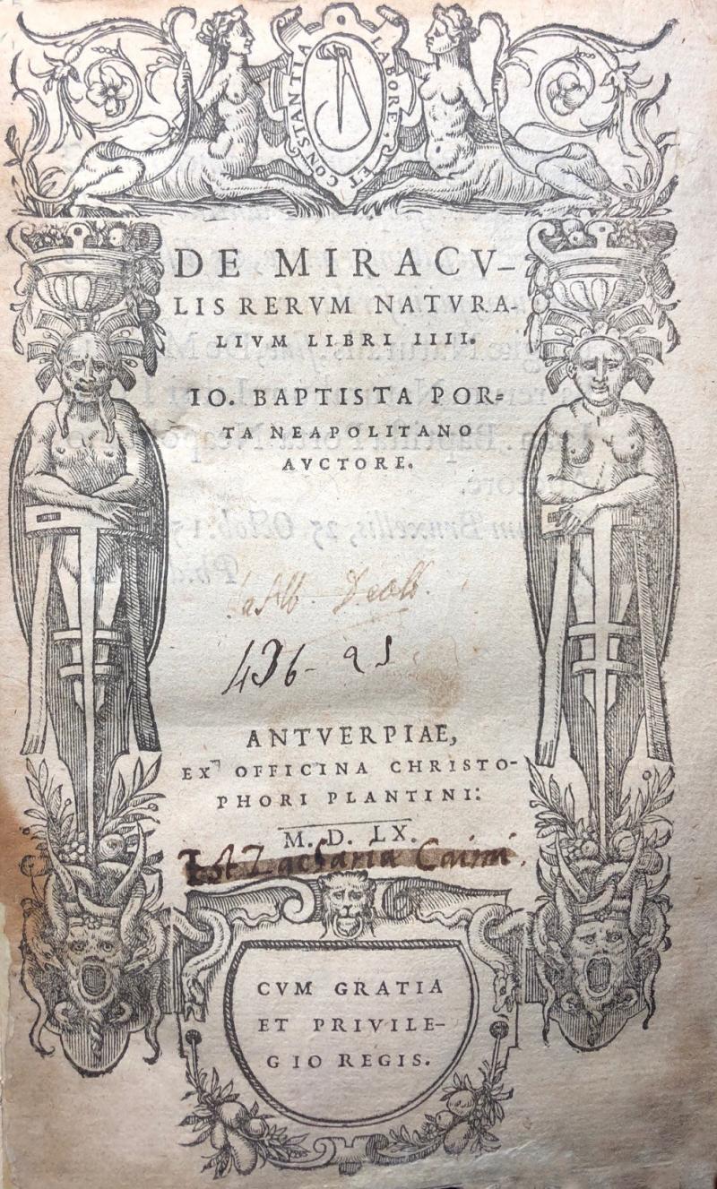 De Miraculis Rerum Naturalium Libri IIII Magiae naturalis, sive de miraculis rerum naturalium, libri IIII. by Porta, I. B. [J. B. Porta] Condition: See description Antverpiae, Christophori Plantin, 1560. 8vo (16.3 x 10.6 cm). Title page with woodcut vignette, [xiv], 136, [i] pp. Contemporary full limp, blind vellum.= Very rare, early Plantin edition (Privilegio dated 25 Octob. 1559) of the first work by the Neapolitan mathematician and natural philosopher Giambattista [here Ioan Baptista]Della Porta (1535-1615). The first edition was published in Naples in 1558, and is very rare too. This work includes the very first description of the camera obscura or dark room; in other words, the description of the first technical device allowing the projection of an image. Also contains various observations and thoughts regarding geology, metallurgy and magnetism, as well as poisons, drugs, perfumes, etc. "Della Porta was an Italian scholar, polymath and playwright who lived in Naples at the time of the Scientific Revolution and Reformation. Giambattista della Porta spent the majority of his life on scientific endeavours. He benefited from an informal education of tutors and visits from renowned scholars. His most famous work, first published in 1558, is entitled Magiae Naturalis (Natural Magic). ... He was also referred to as 'professor of secrets' ... His private museum was visited by travelers and was one of the earliest examples of a natural history museum. It inspired the Jesuit Athanasius Kircher to begin a similar, even more renowned, collection in Rome. Della Porta was the founder of a scientific society called the Academia Secretorum Naturae (Accademia dei Segreti). This group was more commonly known as the Otiosi, (Men of Leisure). Founded sometime before 1580, the Otiosi were one of the first scientific societies in Europe and their aim was to study the 'secrets of nature'. Any person applying for membership had to demonstrate they had made a new discovery in the natural sciences" (Wikipedia). Pictorial bookplate "virtutis regia merces" of the Skene Library mounted on the front pastedown. Some old, skilful repairs to the binding. Internally a very good, clean and unmarked copy. DSB XI, pp. 95-98; Voet, 2085. Autore : Io Baptista Della PortaEditore : AntuerpiaeAnno di pubblicazione : 1560 Note dell'Autore