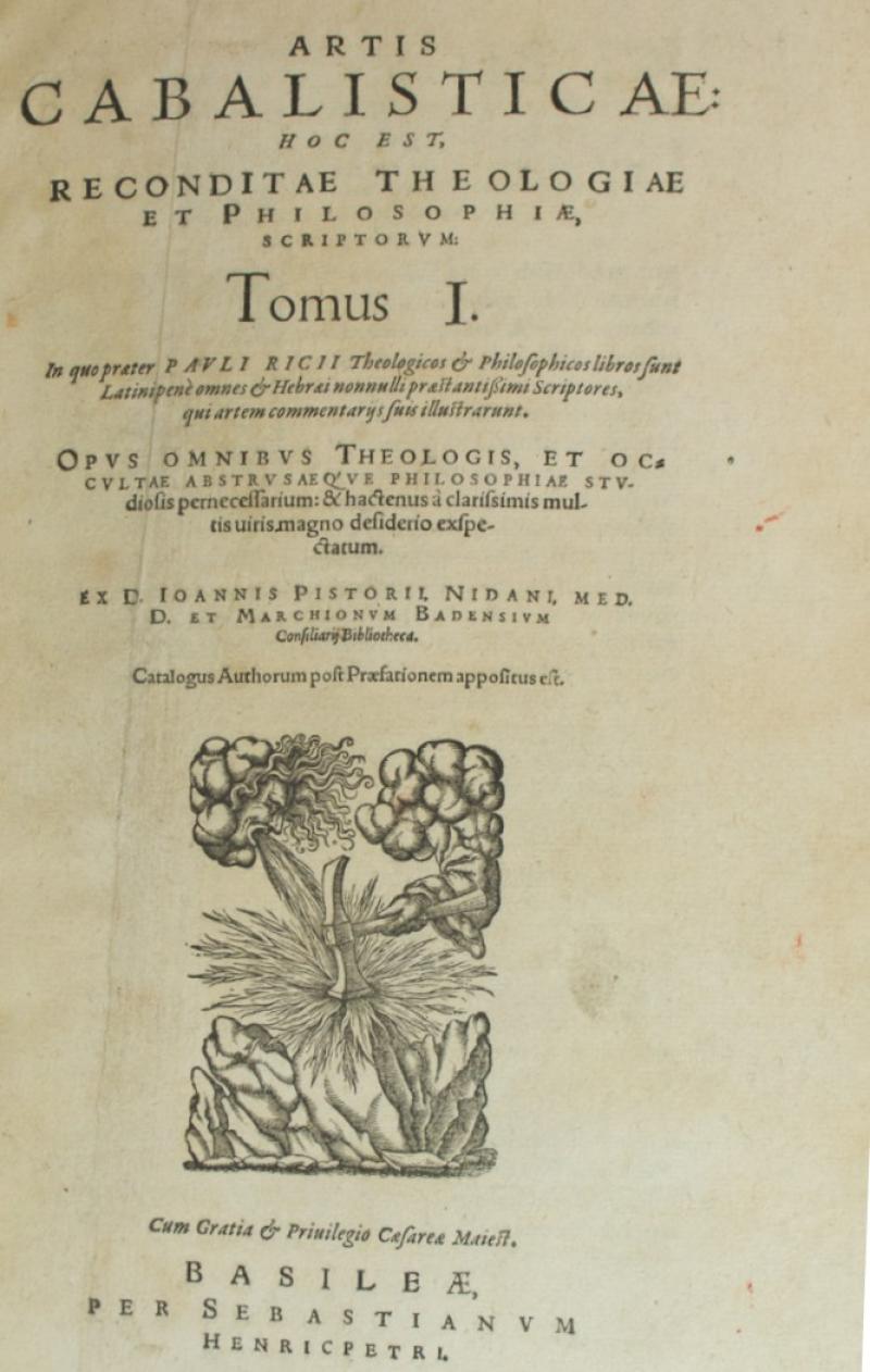 Artis Cabalisticae Prima edizione. L'opera di 1000 e più pagine contiene differenti testi fra cui quello di Judah Abrabanel's Dialoghi di Amore, il commento Archangelus de Burgonuovo's e le conclusioni di Pico della Mirandola, lavori di Paulus Ricius, De Coelesti Agricultura (1514 è una "compilation" di testi includenti la Portae Lucis), De Verbo Mirifico, il De Arte Cabalistica di Reuchlin, e la traduzione del 1480 della Sepher Yetsirah. Questo libro fu un riferimento per tutto il rinascimento per gli studiosi e scrittori di Cabala. Più volumi furono immaginati ma solo uno fu pubblicato. Autore : Johannes Pistorius NidanusEditore : Sebastianum Henricpetri Basilea 1587Anno di pubblicazione : Note dell'Autore