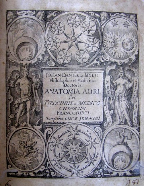 Anatomia Auri sive Tyrocinium medico chymicum Importante trattato del medico chimico J.Daniel Mylius stampato da Lucas Iennis nel 1628. J.Daniel Mylius fu, insieme a Heinrich Khunrath e Michael Maier, un esponente significativo del rosacrocianesimo e partecipò attivamente alla sua diffusione. Dello stesso autore ricordiamo il trattato, in tre volumi, Opus Medico-Chymicum stampato nel 1618 sempre da Lucas Iennis. Autore : Johan Daniel MyliusEditore : Lucas JennisAnno di pubblicazione : 1628 Approfondimenti Arbos genealogica metallorum L'immagine dell'albero qui rappresentato è ispirata alla costruzione dell'albero filosofico emblema delle "sefirote" del luogo ove si congiungono le forze di congiunzione poste l'una di fronte all'altra sedute sui differenti rami. La fantastica immagine è riportata nell'opera di Johan Daniel Mylius "Anatomia Auri" edita a Francoforte nel 1628 da Luca Iennis. Sul primo ramo di destra è seduto lo Zolfo (A), l'origine di tutto, dalla cui bocca esce un soffio infuocato. Al medesimo livello, ma sul ramo opposto, siede il Mercurio (B), materia prima, raffigurata con le ali ai piedi. Dalla loro congiunzione "Ex coniugo horum" sono raffigurati, al livello superiore e in modo opposto, i figli [figlio (D)e figlia (C)] che raffigurano lo stato sublimato ovvero purificato dei loro avi. Essi sono coronati e, rispettivamente, il figlio ha sul capo delle corna mentre la figlia mostra uno sguardo carico di turgido livore. Dalla loro unione nasceranno altri figli che occupano il terzo livello; (F) il figlio ed (E) la figlia ambedue portano sul loro capo le tre corone simboli dei tre regni della natura (l'animale, il vegetale e il minerale). Le figure del terzo livello raffigurano quindi uno stato di completezza ovvero di maturità dalla quale poi nasce un figlio (G) a sua volta tre volte coronato come gli avi e il cui temperamento appare calido & siccum . Il terzo livello rappresenta la tintura lunare dalla quale si otterrà la tintura aurea simboleggiata dalla figura posta in cima all'albero (H). Lo stato finale è lo stato della perfezione della natura e dei suoi tre regni L'enigma dell'albero filosofico è così svelato sottolineando le affinità parentali che esistono nell'evoluzione dei metalli che da grezzi passano allo stato di perfezione raffigurato dall'oro, dal Sole, dal "Lapis Philosophorum". "Ego sum elisir ad rubeum trasmutans omnia corpora in perfectum & purissimum aurum melius quam de minera". Note sull'autore Mylius Johan Daniel Johan Daniel Mylius fu uno dei più importanti rappresentanti rosacrociani del suo tempo. Assieme a Henrich Khunrath e Michael Maier rappresentò il rosacrocianesimo in Germania nel XVI secolo. Note dell'Autore