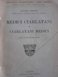 Medici Ciarlatani e Ciarlatani Medici Pregevole opera sul ciarlatanesimo tanto diffuso nel Medioevo e nei secoli successivi. Si parla dell'origine della parola "ciarlatano" delle preparazioni astruse che molti medici fornivano ai "gonzi" per curarsi. Autore : Andrea CorsiniEditore : Nicola Zanichelli BolognaAnno di pubblicazione : 1923 Note dell'Autore